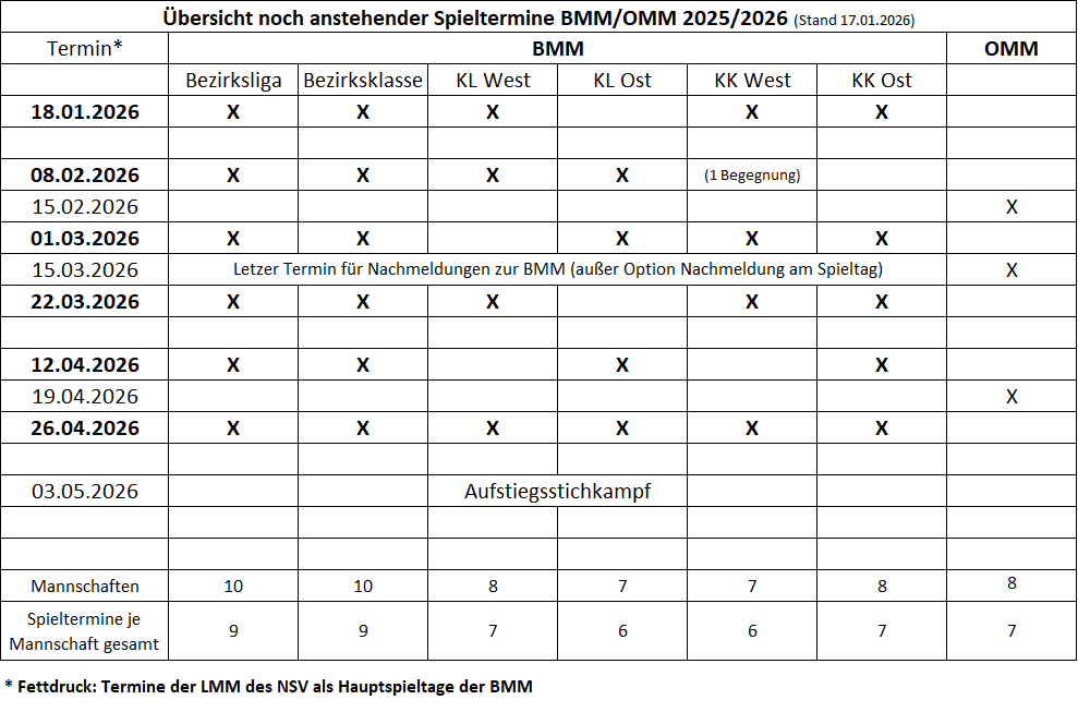 Mannschaftsmeisterschaften BMM/OMM und Mannschaftspokalturniere: Ergebnisdienst
